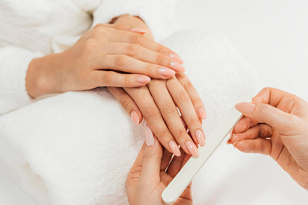 Basic nails cutting & shaping, cuticle grooming, gel scrub, and lacquer of your choice, massage, hot towel.